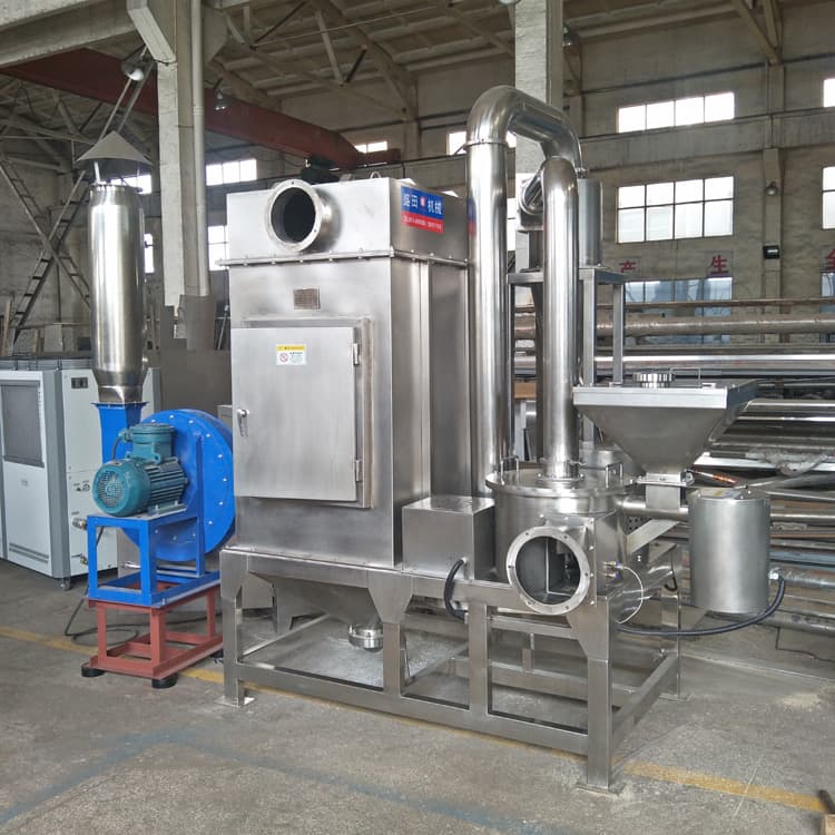 但是膠類產(chǎn)品如明膠、卡拉膠、阿拉伯膠等屬難粉碎物料,它們具有韌性,柔軟,粘性等特點。過去的粉碎生產(chǎn)中,大多采用冷凍粉碎機粉碎。液氮冷凍粉碎生產(chǎn)過程損耗大量液氮,成本偏高。為解決大部分粘性含糖分的特殊性物料的粉碎問題,江陰市盛田機械制造有限公司特別研發(fā)出了低溫粉碎機,溫度可低于零下10度,物料在低溫狀態(tài)下粉碎效果好,產(chǎn)量高。
