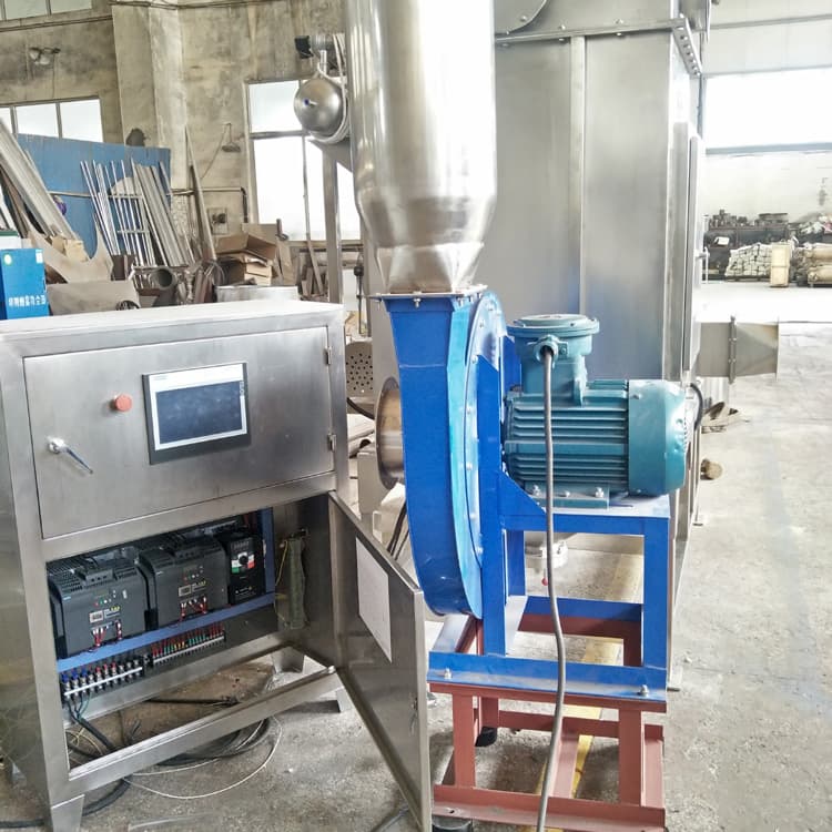 2019年9月15日,江陰盛田公司為金鑼食品有限公司粉碎卡拉膠試機成功。不僅為金鑼公司后續(xù)的生產(chǎn)提高了產(chǎn)量,更為他們大大降低了生產(chǎn)成本。該低溫粉碎設(shè)備由工業(yè)冷風(fēng)機、進料倉、粉碎機、分級機、旋風(fēng)下料裝置、引風(fēng)機、及電控柜組成。普通超微粉碎機在運轉(zhuǎn)過程會產(chǎn)生相當(dāng)高的熱量,為了降低機腔及管道內(nèi)的溫度,采用了大功率冷風(fēng)機,*低溫度可達到零下10度。原料易粘附,工程部技術(shù)人員對粉碎機腔進行了改造,使設(shè)備內(nèi)部無原料殘留物。加裝西門子變頻器控制轉(zhuǎn)速可改變出料細(xì)度,粉碎細(xì)度控制在60-80目。設(shè)備采用西門子PLC加觸摸屏自動化控制,控制系統(tǒng)器件采用西門子品牌(包含觸摸屏、PLC及擴展模塊、變頻器),其余配電器件采用施耐德品牌。