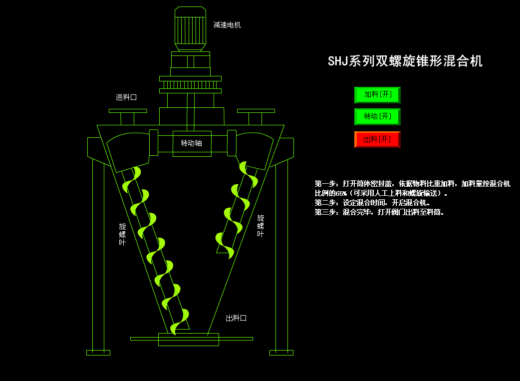 該機為單螺桿加S式漿葉組合而成,攪拌范圍大,混合速度快。無死角、對比重懸殊、混配比懸殊的物料混合更為適合。
