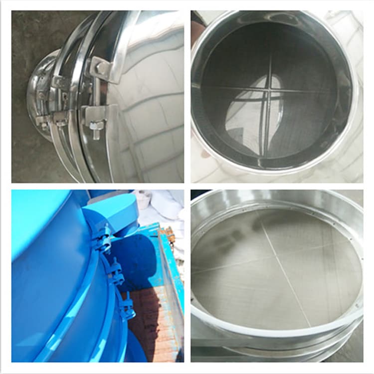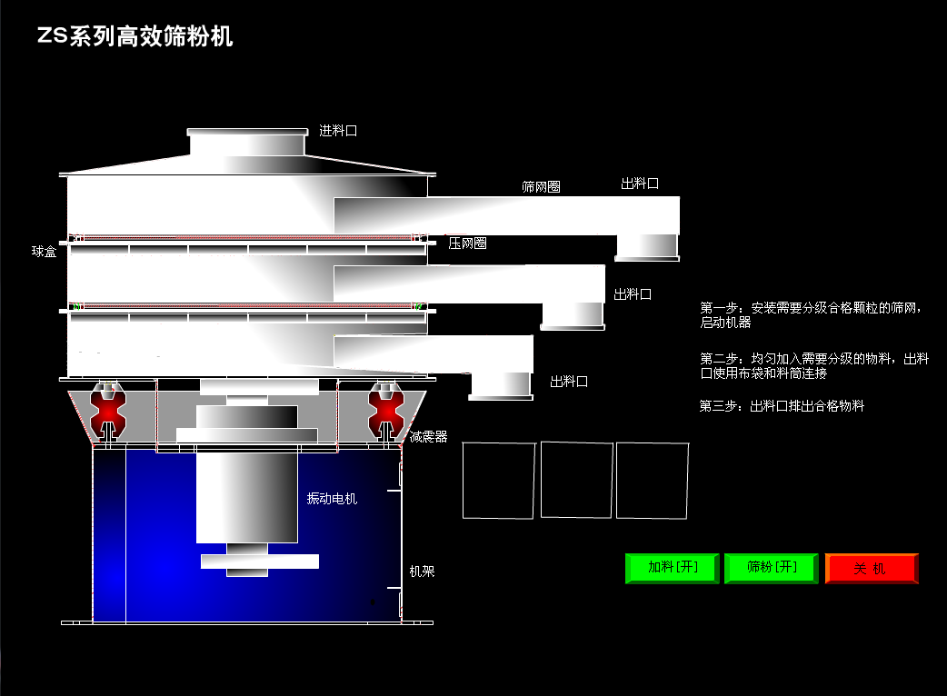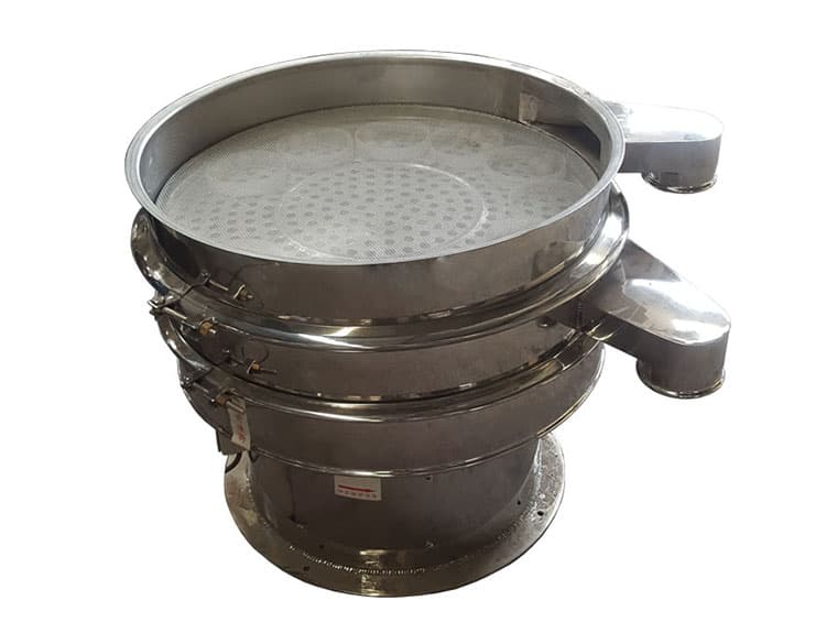 This machine is composed of vertical vibration motor,a sieve bottom, a mesh frame, sieve room,rubber vibrating bowl, and all fastening pieces.